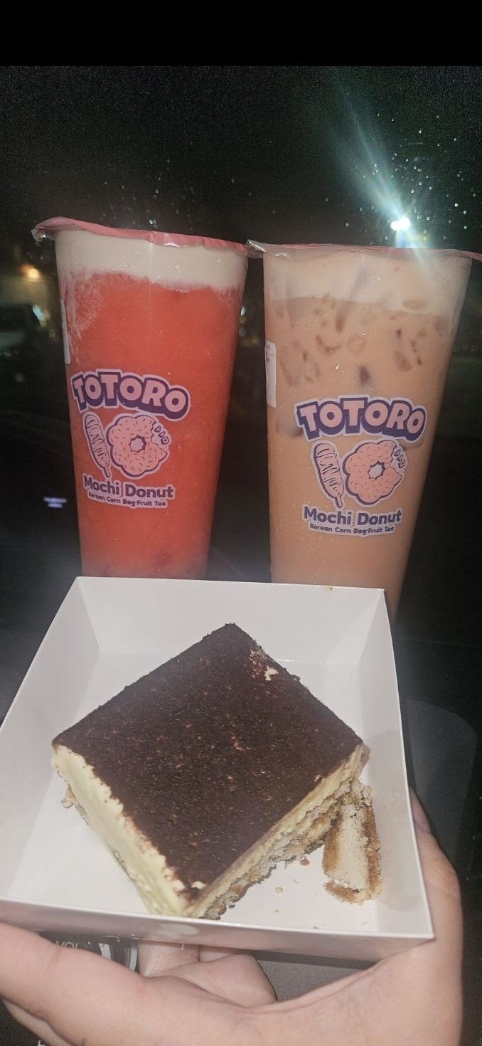We were together once again and got sushi!! This was our first time trying tea with shots in it, and honestly it was so good. It ended up being a great idea for real. We also went back to your apartment after sushi, and then we went for a walk! We saw titty mushrooms. I combined these two days because I think my gallery mixed things up. We also tried that Totoro place, and absolutely loved their tiramisu and tea. I remember sitting in your car eating that up and just enjoying every bite.