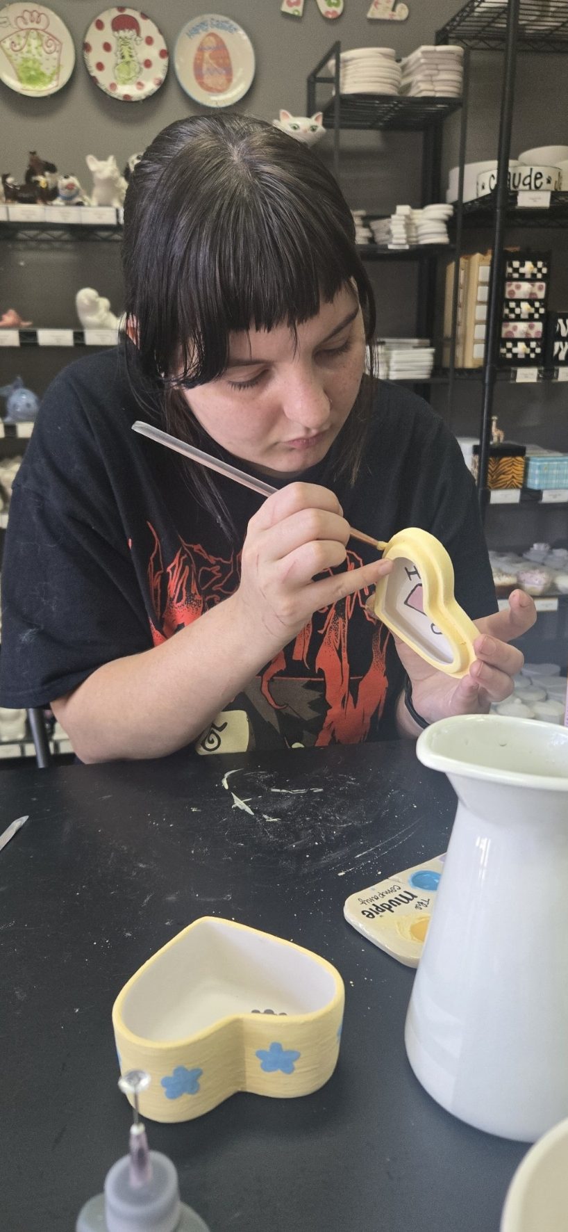 This was our very first date!! I was so excited, and I remember as I got ready I was singing so much and I could barely think straight. We were going to paint pottery together at mudpie, and I was like omg I literally cannot paint but I love watching her paint so it’s going to be perfect. You gave me such pretty pink roses when you came to pick me up. I was so excited when I first saw you this day. I just finally felt like we could be ourselves together for the first time without anything getting in the way. Just knowing that we could go on a date meant a lot. I never believed I’d get to experience this with you. We went to East End for a walk with Iris, got some Starbucks, then went to paint. We spent a couple of hours painting, and everything turned out so cute in the end!! I loved being able to watch you paint the heart shaped box- and later on for a different day you gave me a mini bouquet which I put inside the box that now stays on my windowsill with my most treasured gifts from you. Later that evening, we dressed up and went to the Mexican restaurant nearby and got mini margaritas and probably drank too much, but it was still fun. I know we were overwhelmed when we first got there. I had no idea it would be so loud. We did try to focus on each other though, and after that things got much better. You got tamales beans and rice, and I got beef fajita quesadillas. We definitely slurred our words a lot when ordering stuff, but it’s okay lol. I’m just glad we ended up relaxing more and having a good time. It was nice walking back to your apartment with you, and I stayed with you that night. Waking up next to you after our night out together was really sweet. It felt so different but nice to be able to look at you in your sleep after waking up and just think about all the reasons I adore you.