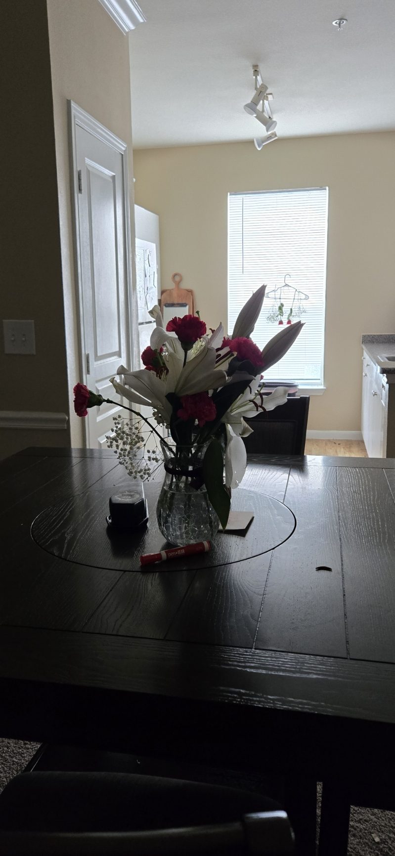 I slept over these nights, then woke up pretty early so got you lillies!! I also had to write on your mirror because I know I can’t be here every morning to tell you how amazing you are. We later got McDonald’s, did like a tinytan happy meal unboxing, and ate oreo cake!!We went to the park and did a little walk at a park, gave Iris a bath, did karaoke, and then by your apartment we got boba tea!! On the way back, I caught a lizard and its tail was so wiggly. He chomped my finger. You also got me a whale puzzle and wrote a letter on a heart, and it is the sweetest ever. I watched you play Skyrim too while I put part of it together!!